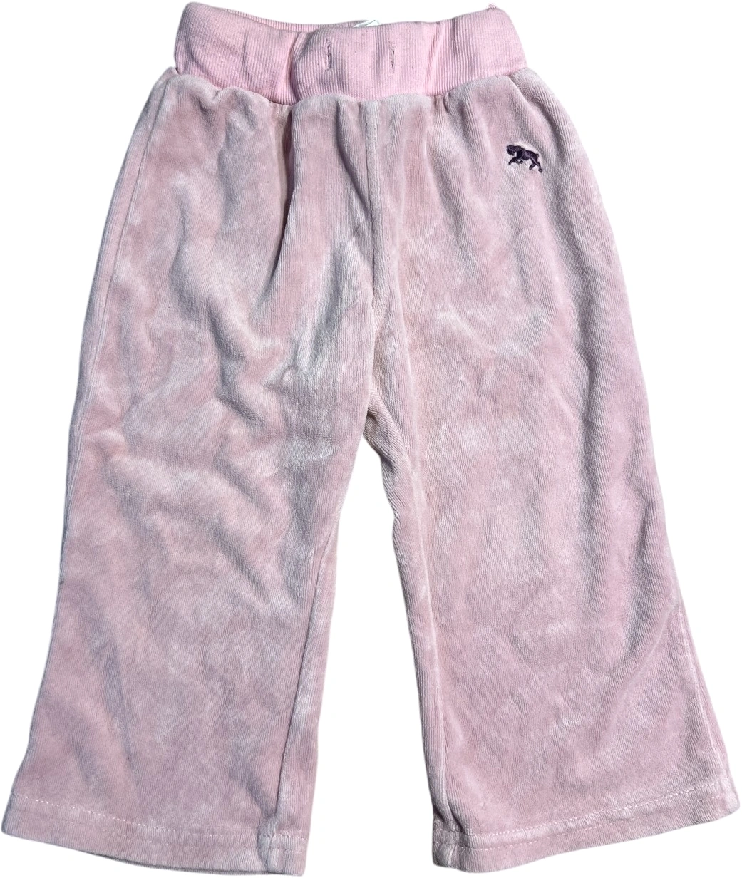 Myk, velourbukse i en delikat rosafarge. Elastisk midje for ekstra komfort og en liten detalj på siden gir et stilig preg.