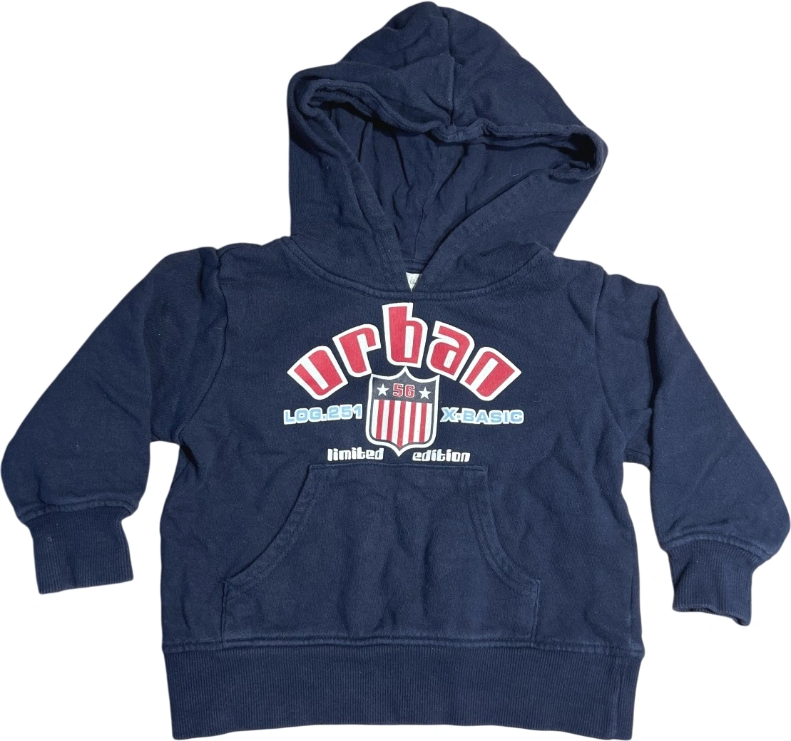 Denne myke genseren i dyp blå er ideell for komfort hele dagen. Den har lange ermer og et stilig grafisk trykk foran, perfekt for både lek og hverdagsbruk.