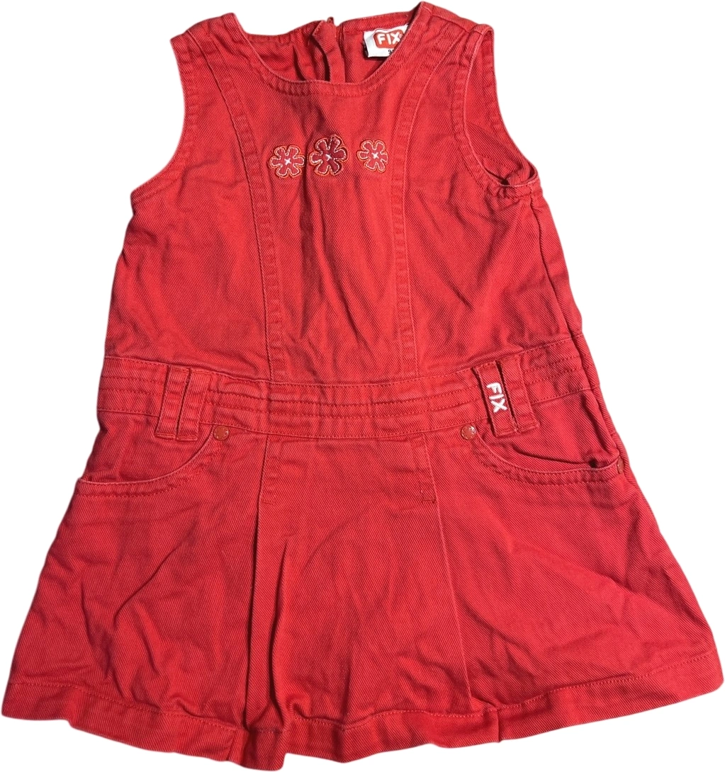 Lettkjole i rød farge med brodert blomstermotiv på fronten. Laget i komfortabelt materiale og minimalt brukt, med praktiske lommer i sidene.