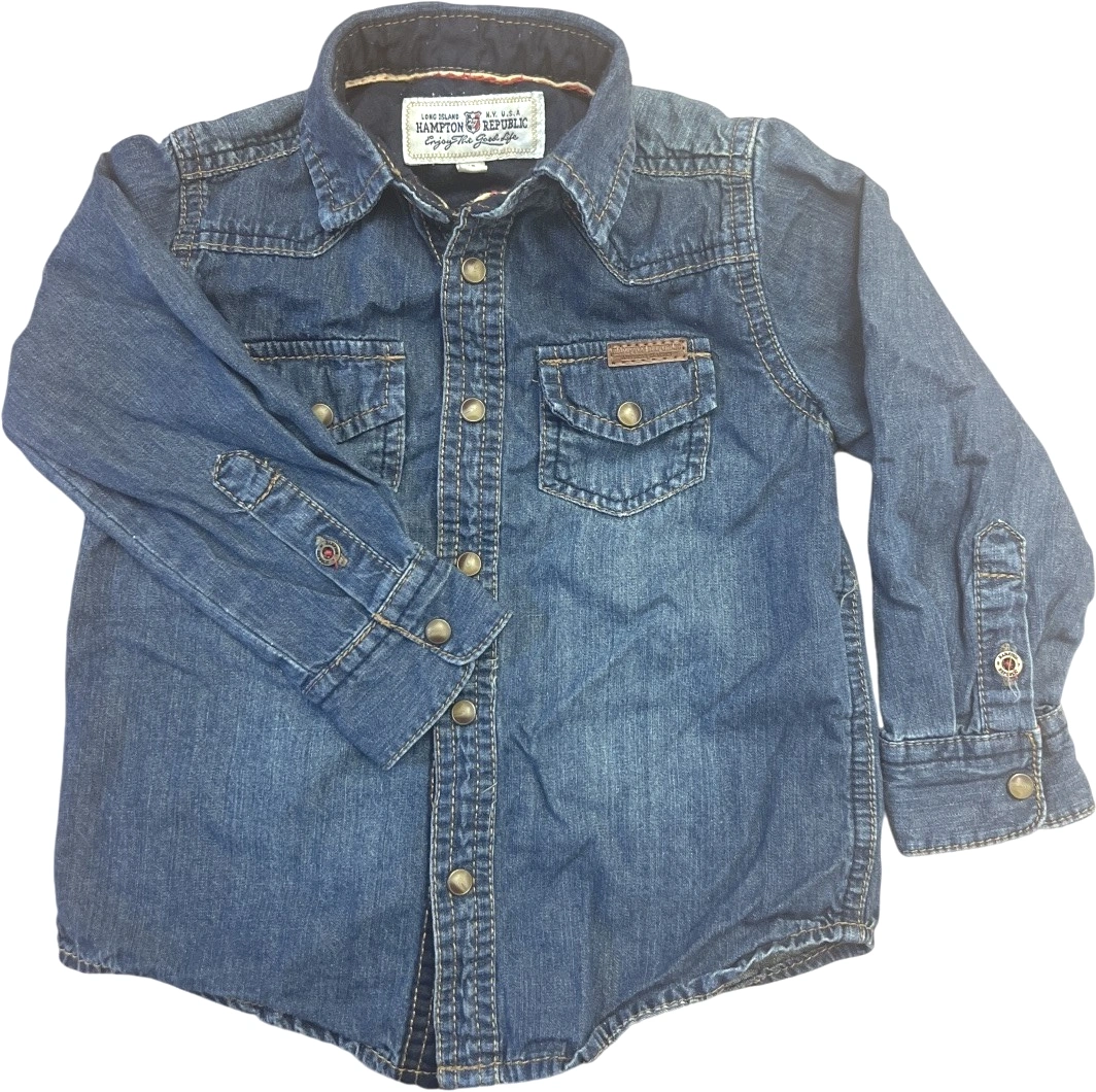 Stilren denimskjorte i en klassisk blåfarge, designet med doble brystlommer og knappelukking foran. Mykt materiale gir en komfortabel passform og et tidløst utseende som passer til alle anledninger.
